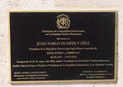 En un acto solemne, la Embajada de la República Dominicana en los Estados Unidos Mexicanos inauguró el viernes, veinticuatro de mayo 2024, El Jardín República Dominicana y el Monumento a Juan Pablo Duarte y Díez, fundador de la República Dominicana, en la Avenida Explanada y Monte Everest de las Lomas de Chapultepec, en la Ciudad de México.