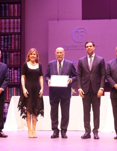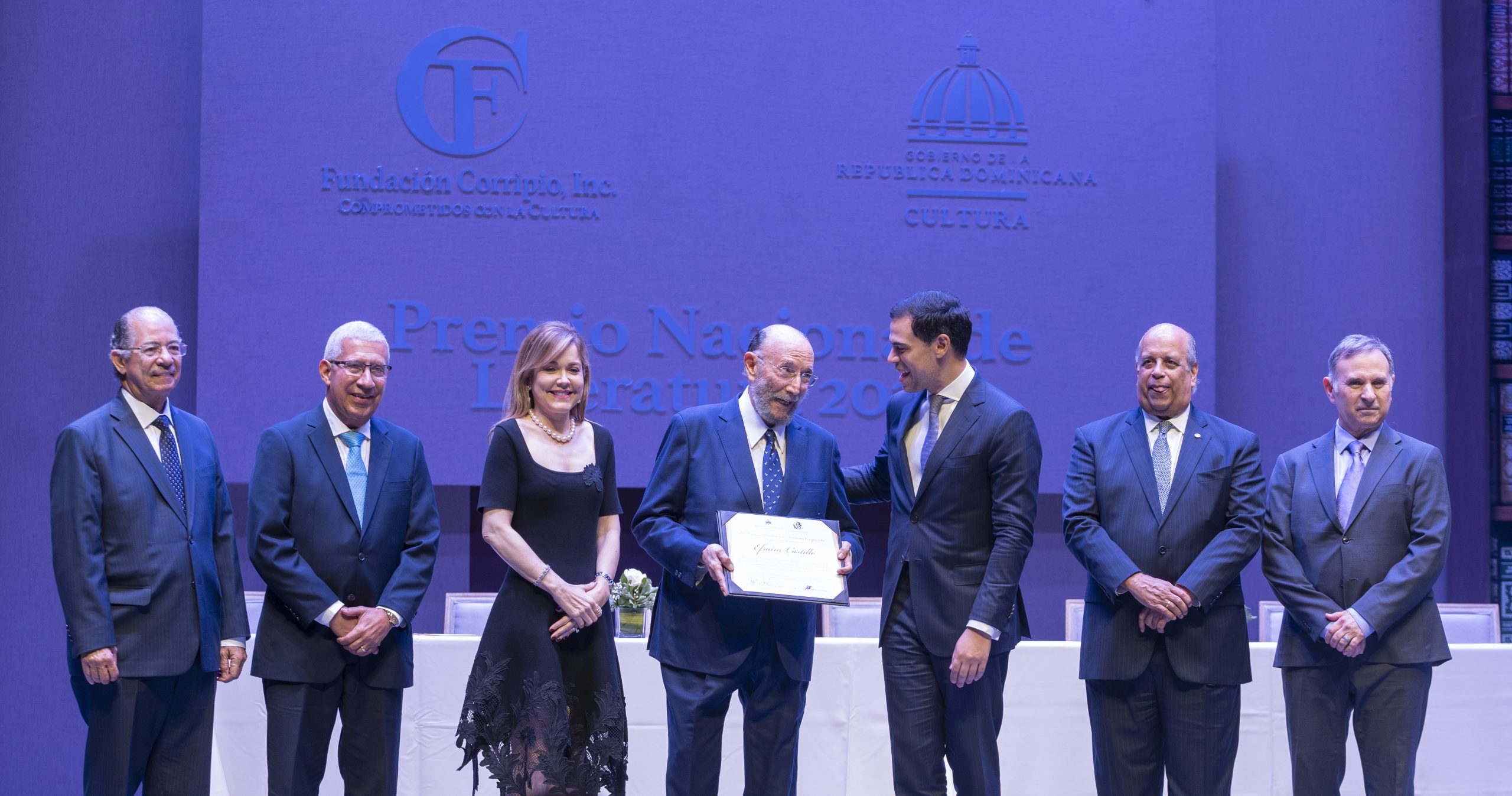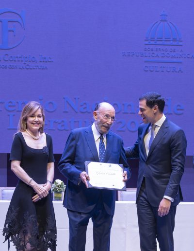 La Fundación Corripio Inc. y el Ministerio de Cultura hacen entrega del Premio Nacional de Literatura 2025, al escritor Efraim Castillo, por su larga y fecunda trayectoria literaria como miembro de la Generación del 60, en narrativa, poesía, dramaturgia, crítica de arte, y sus indiscutibles contribuciones al quehacer intelectual desde la prensa escrita, donde permanece activo.